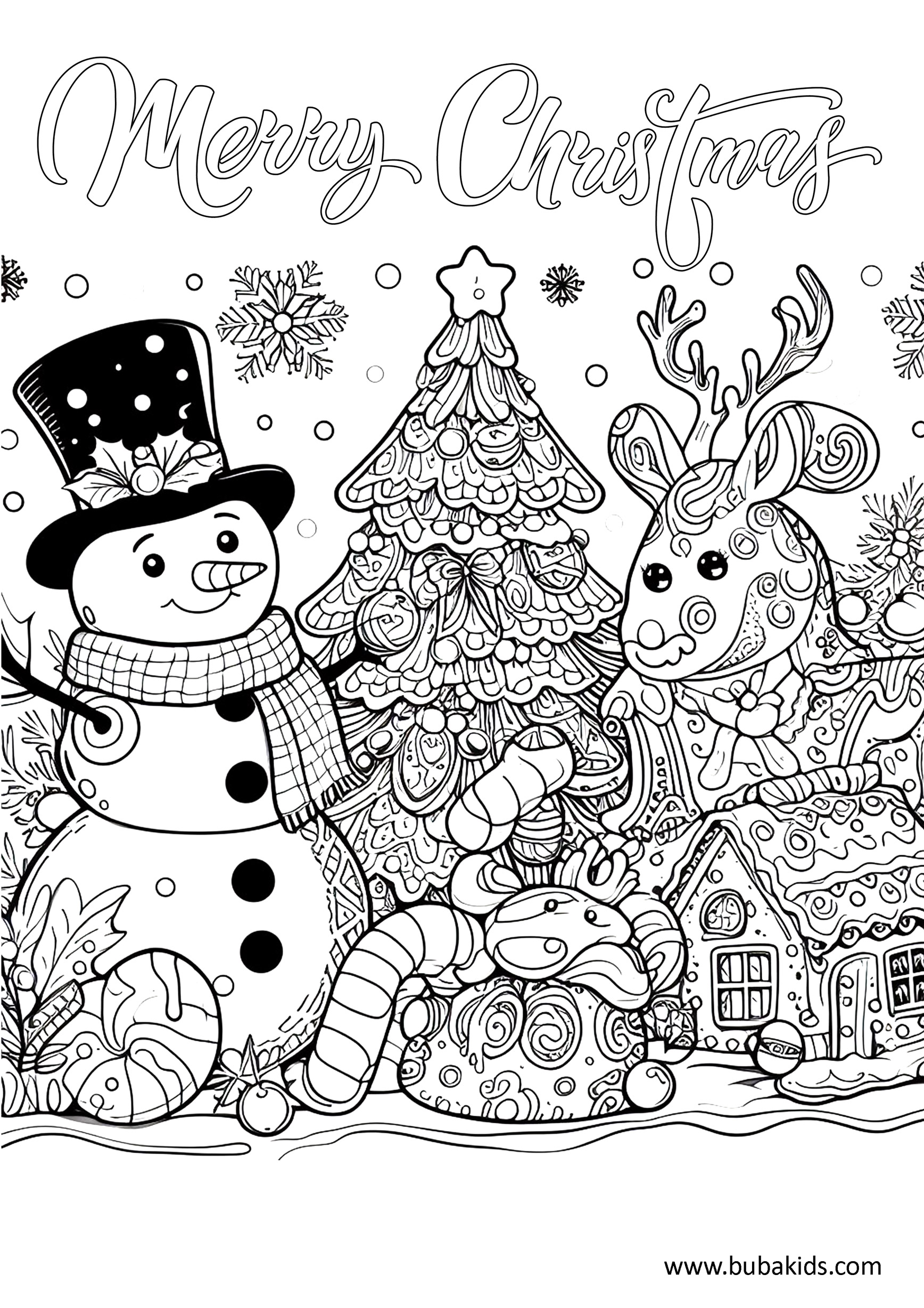 christmas tree snowman christmas theme coloring page