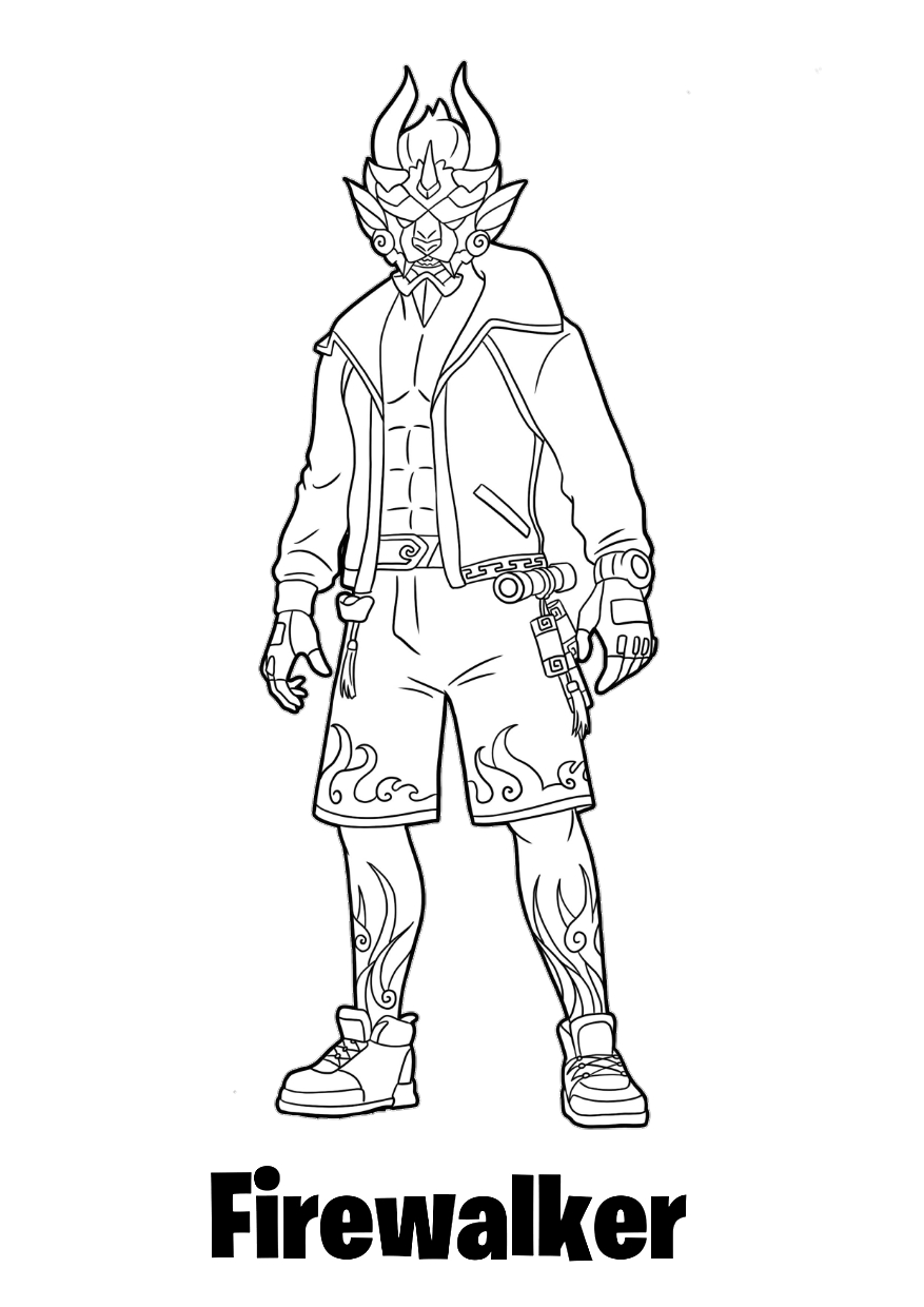 Firewalker Fortnite the dragon-faced skin coloring page.